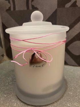 Bougie fabriquée par la Compagnie du vrac, fragrance Pivoine rose et musc(8%), cire soja-coco.