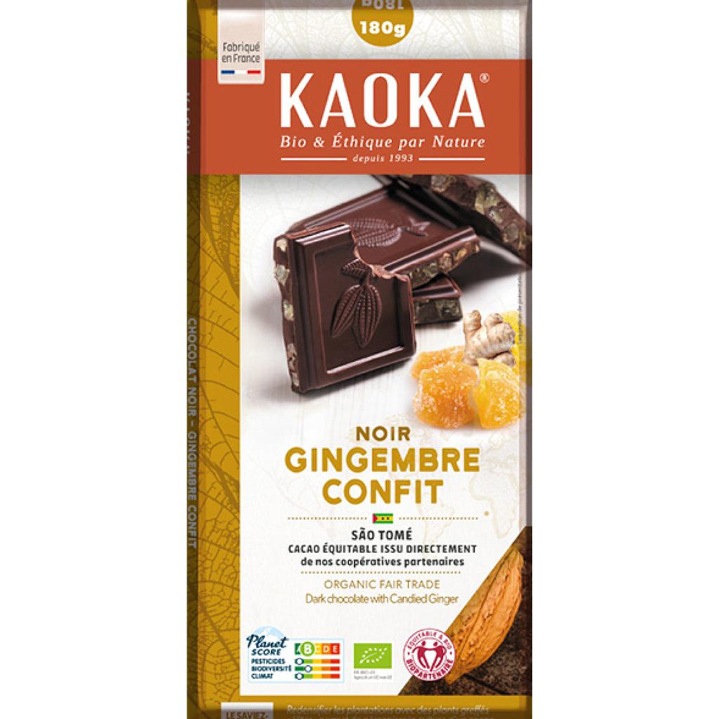 Tablette de chocolat noir 66% Gingembre confit - Bio - Fair trade - Kaoka - 180g